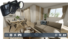 | 実際にその場に立っているようなリアルなVR(バーチャルリアリティー)の3D空間を、様々なデバイスを通してお手軽にご覧いただけるクラウドサービスです。 |